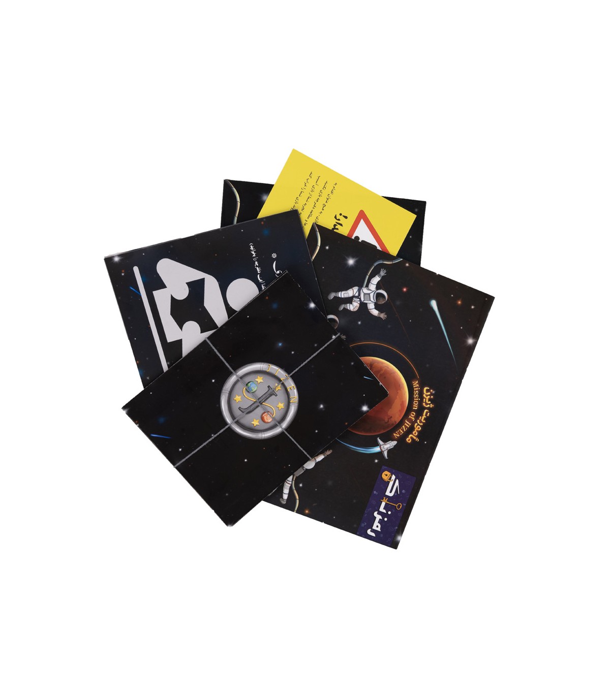 یک عدد دفترچه اصلی بازی - یک عدد دفترچه قوانین - هشت عدد پاکت - یک عدد برگه هشدار