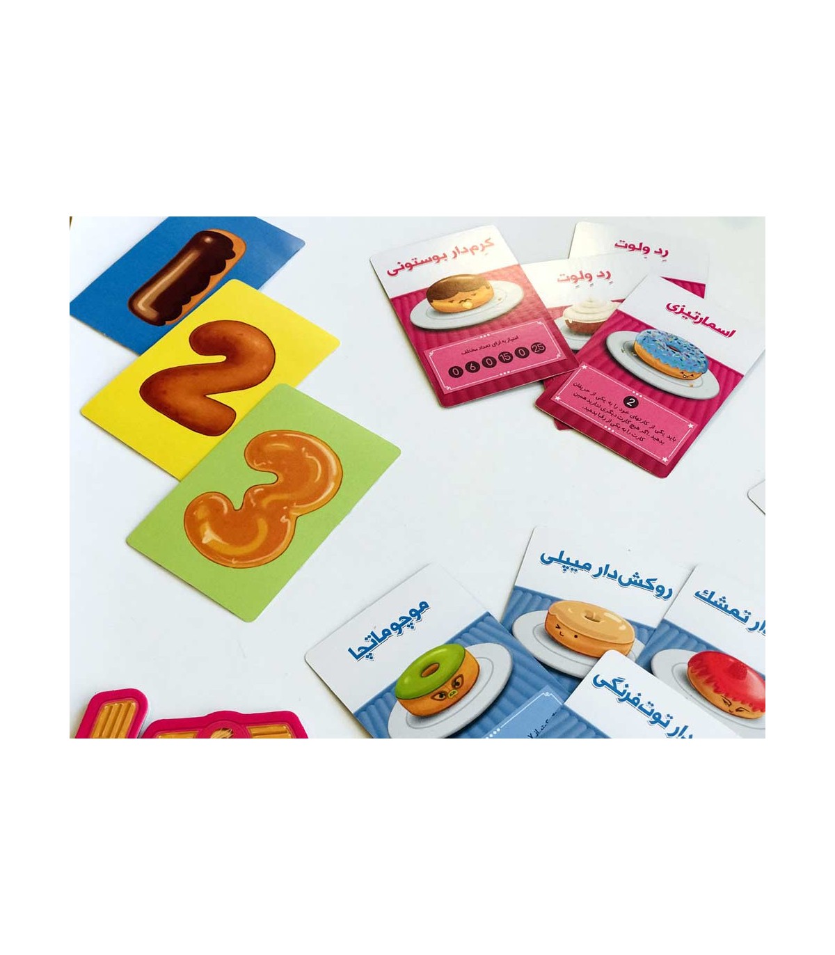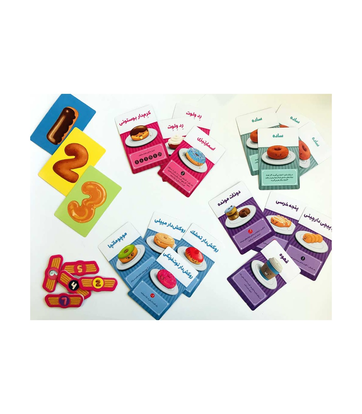 زمان برداشتن دونات هاست! در این بازی کارتی یک سینی وسوسه برانگیز از شیرینی های تازه در انتظار پیشنهاد شماست. به دنبال “کرولر ستاره ای” خواهید رفت یا “روکش دار” را می قاپد. “شکلاتی دوبل ” مطمئنا امتیاز دارد اما “کرم دار بوستونی ”در دراز مدت ممکن است امتیاز بیشتری داشته باشد. به دقت انتخاب کنید چون اگر دو یا چند بازیکن دونات یکسانی را انتخاب کنند هیچکس آنرا دریافت نمی کند.