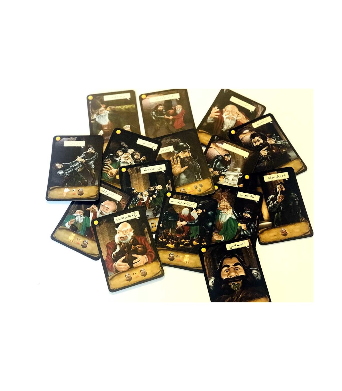 به هر نفر 20 سکه و از روی دسته کارت ها 4 کارت بدهید ، بقیه سکه های باقیمانده را کنار دسته کارت ها قرار دهید که از این به بعد به آن خزانه داروغه می گوییم.