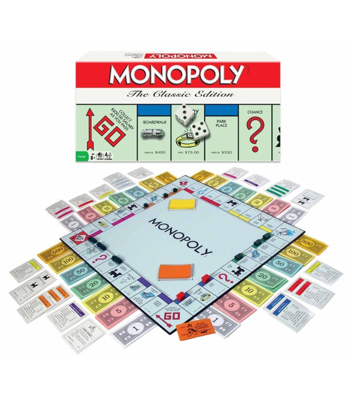 منوپولی یک بازی صفحهای که در سال 1903 میلادی توسط برند (Hasbro) عرضه شد. نسخهی حاضر منوپولی در سال 1935 میلادی توسط برادران پارکر با راهکار سرعت در خرید و فروش املاک در بازی طراحی شد. این بازی با کارتها، مهرهها، سه عدد تاس و یک صفحهی بازی لحظات خوشی را برای دو تا شش نفر بههمراه خواهد داشت.