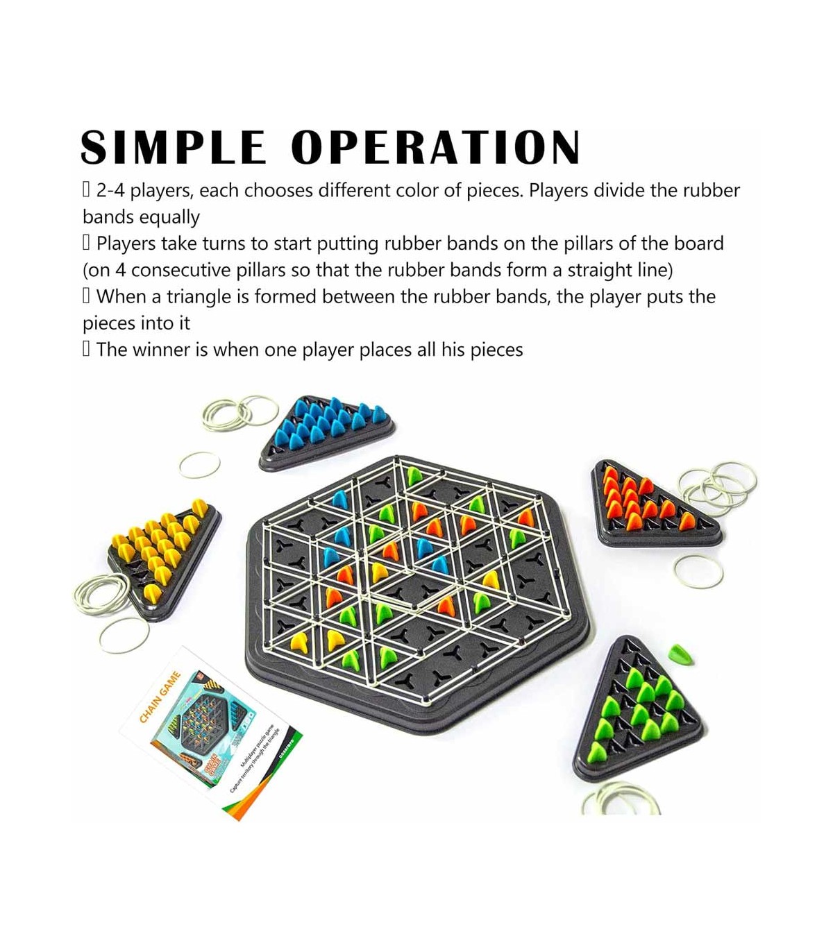 با کشیدن کشهای لاستیکی روی ستونها، بیشترین تعداد مثلث را تشکیل داده و تصاحب کنید.