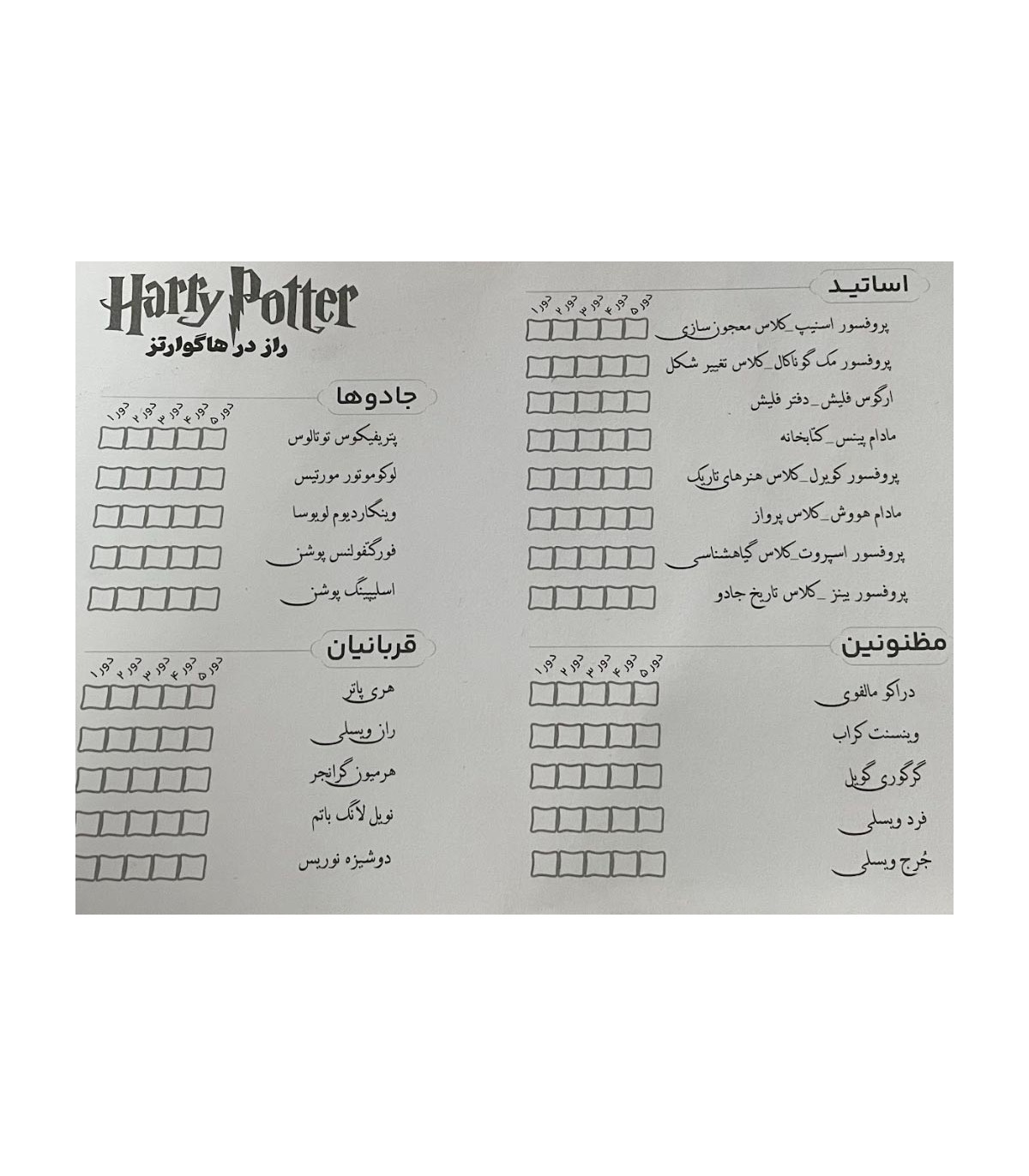 دستور بازی هری پاتر