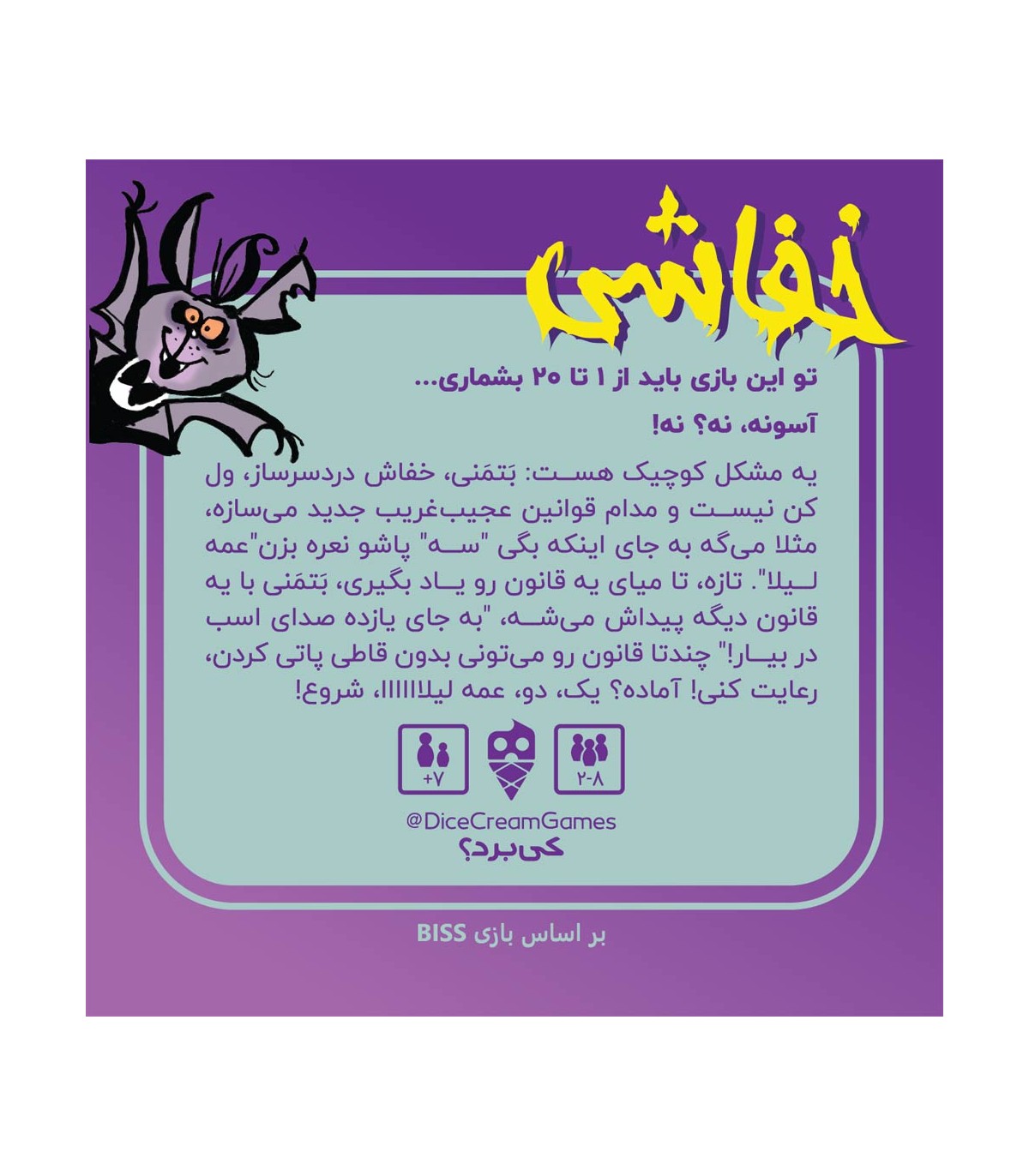 یک، دو، سه، چهار، هُپ! یادته؟ این بازی از هُپ خیلی چالشی تره، چرا؟ چون بتمنی، خفاش بازی به جای هُپ گفتن، ازت کار‌های عجیب و غریب می‌خواد، مثلا می‌گه که صدای گاو در بیار!