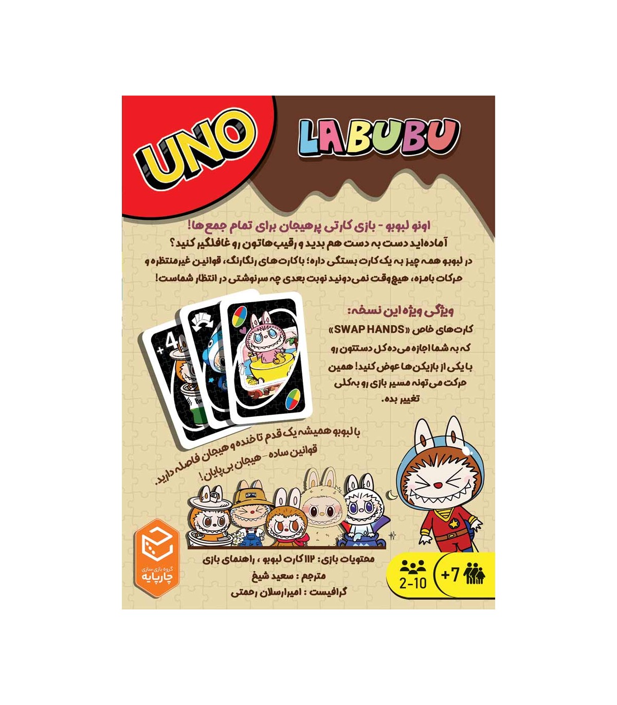 اونو لبوبو یک بازی کارتی پرهیجان برای جمعهای دوستانه و خانوادگی است. قوانین ساده، سرعت بالا و لحظات پر از خنده باعث شده این بازی به یکی از محبوبترین انتخابها برای مهمانیها و دورهمیها تبدیل شود. در این نسخه علاوه بر کارتهای استاندارد UNO، کارت ویژهی Swap Hands نیز اضافه شده که به بازیکن اجازه میدهد تمام دست خود را با دست یکی از بازیکنان دیگر عوض کند! همین کارت ساده میتواند همه چیز را زیر و رو کند و روند بازی را بهکلی تغییر دهد.