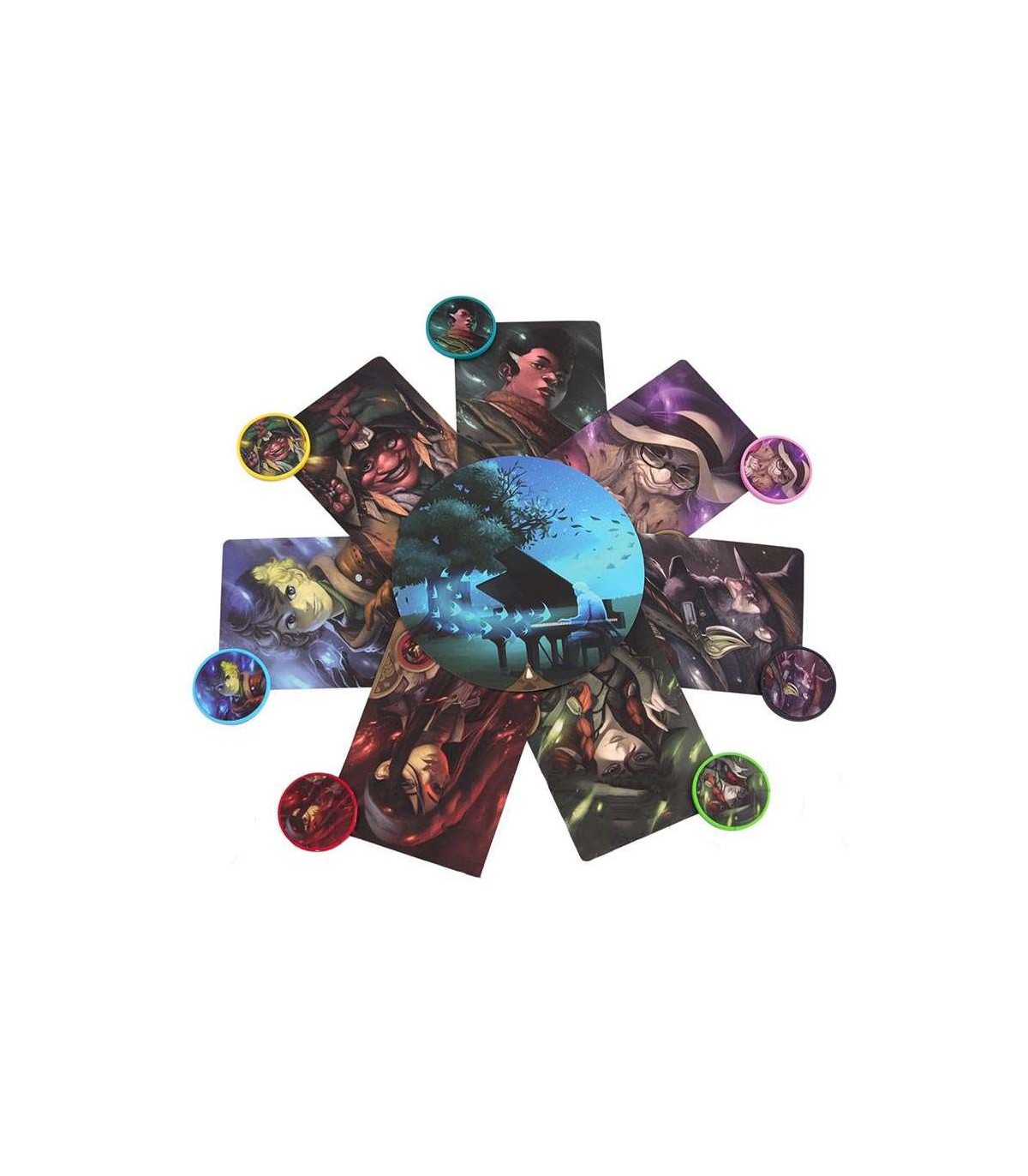 همه بازیکنان دیگر یک کارت شخصیت را انتخاب می کنند و دیسک شخصیت مربوطه را میگیرند. هر بازیکن کارت شخصیت را جلوی خودش و دیسک را در وسط برد بازی قرار میدهد 6. این بازیکنان جادوگران هستند.