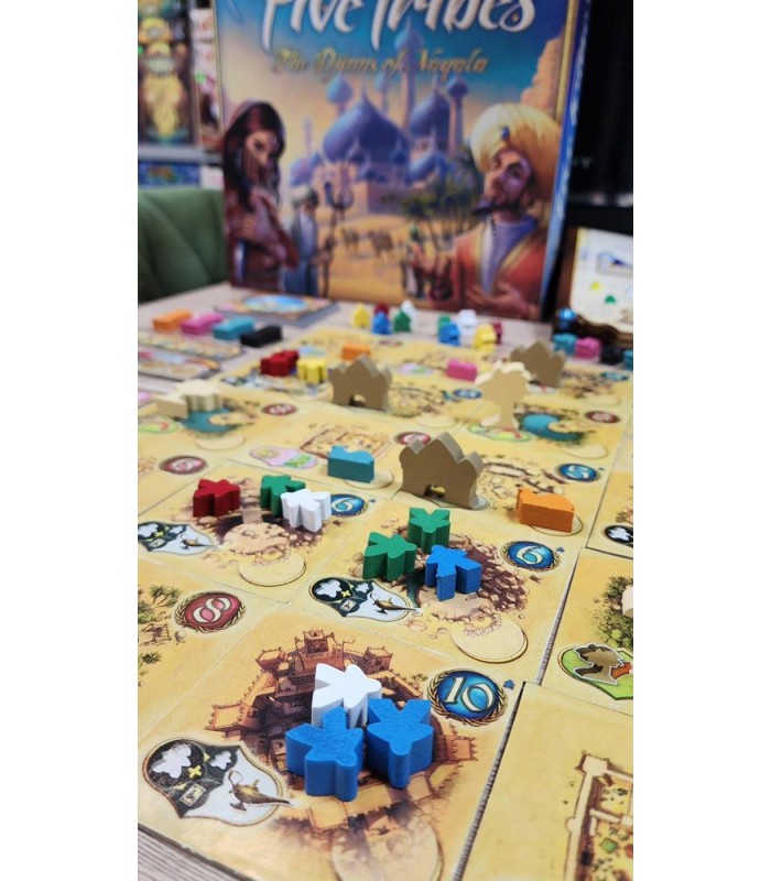 در واقع بازیکنان در بازی Five Tribes باید با کمک قدرت های هر قبیله و همچنین کارت های جن، زمینهای مختلف بازی رو تصاحب کنند و شترهای خودشون رو در زمین تصاحب شده قرار بدند.